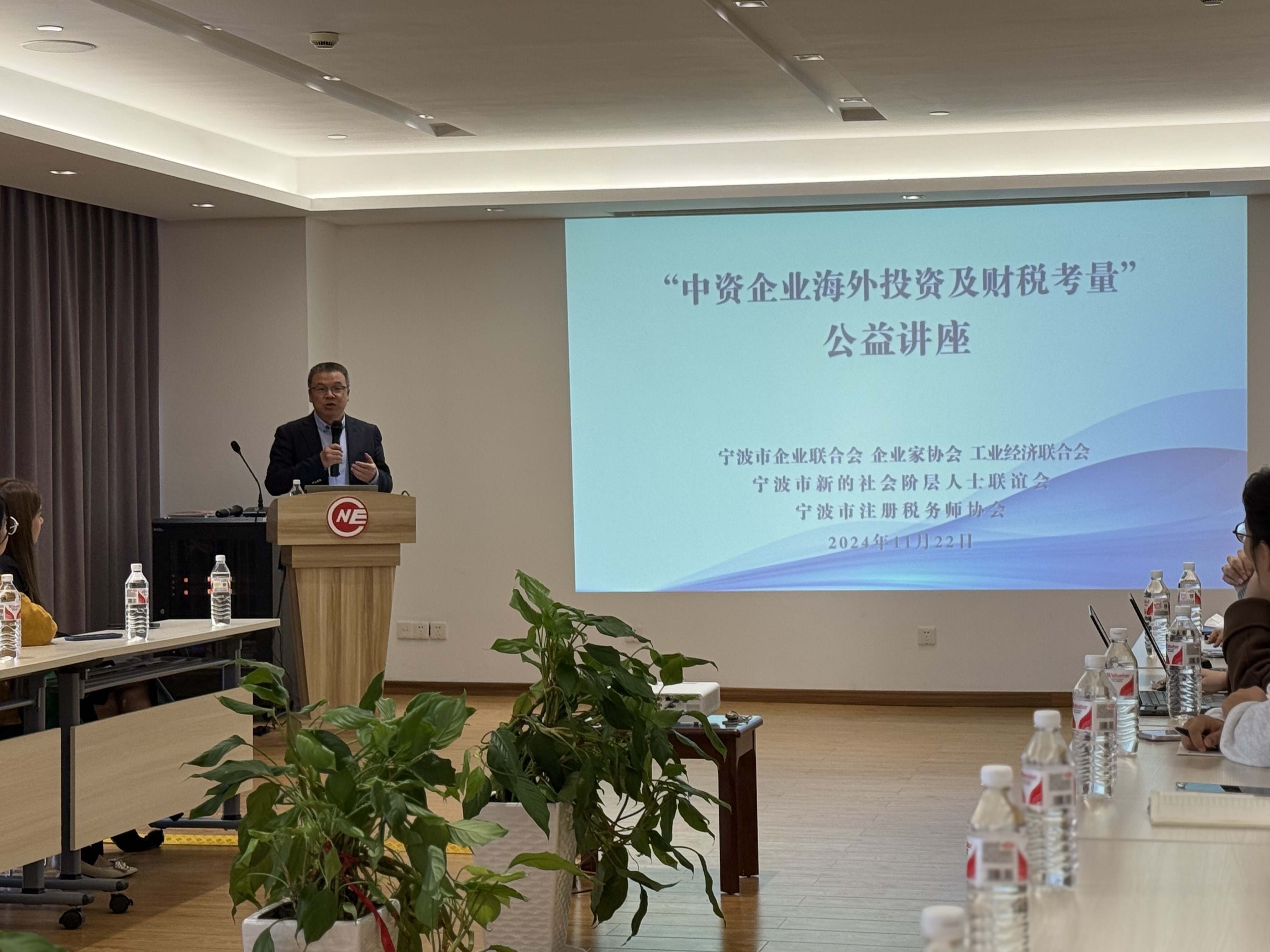 11月22日,由宁波市企业联合会、企业家协会、工业经济联合会(简称市“三会”)、宁波市新的社会阶层人士联谊会、宁波市注册税务师协会联合主办的“中资企业海外投资及其财税考量”公益讲座在市“三会”会议室举行,40余位会员企业的中高层管理者参加。本次讲座由市“三会”常务副秘书长兼办公室主任陈艳主持。